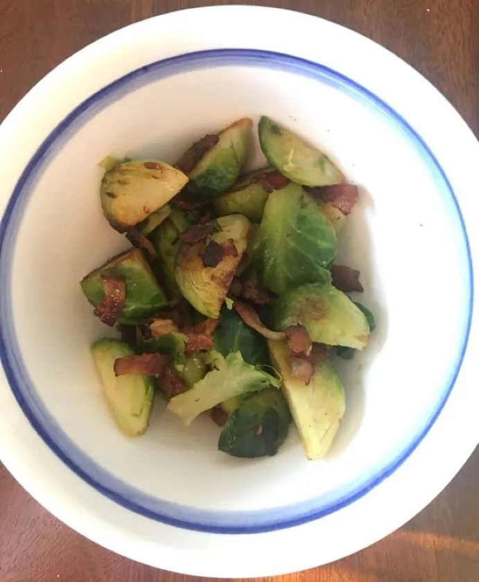 Sauteed brussels sprouts with bacon will change the way you feel about eating brussels sprouts. They are crispy and flavorful. Perfect as a side dish or eaten alone.Taste great warm or cold and can be prepared ahead of time. Delicious and healthy.